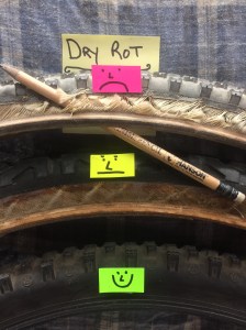 If your tire looks like the one with the pencil through it do not bring it to Black Rock City & replace it immediately. If it looks like the middle tire it may survive but then again maybe not. Dry rot happens from age and exposure to hot dry sunny conditions .